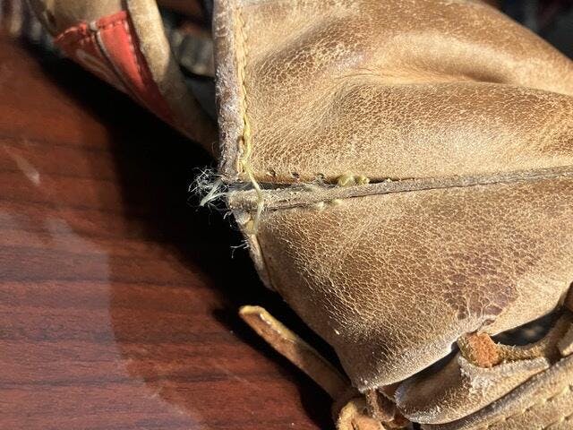 The tension from lacing can cause the leather to rip. Or, the section of pocket that meets your index / middle fingers gets a lot of wear often causing a rip in the leather from the pocket to the welting. There’s a wide array of patching that comes across my workbench. Estimate $45-$120 — please use the contact submission above to get a more accurate estimate based on your needs.