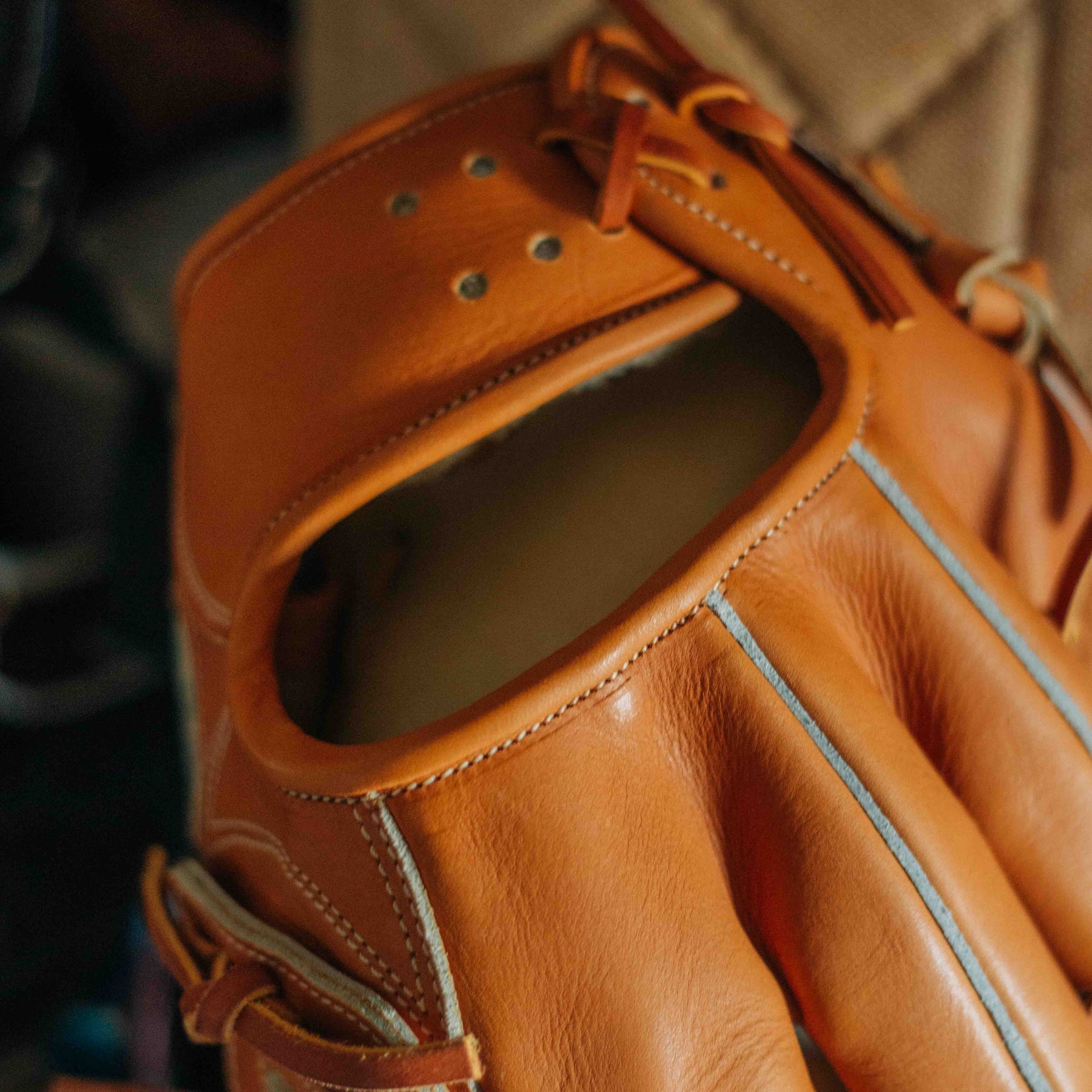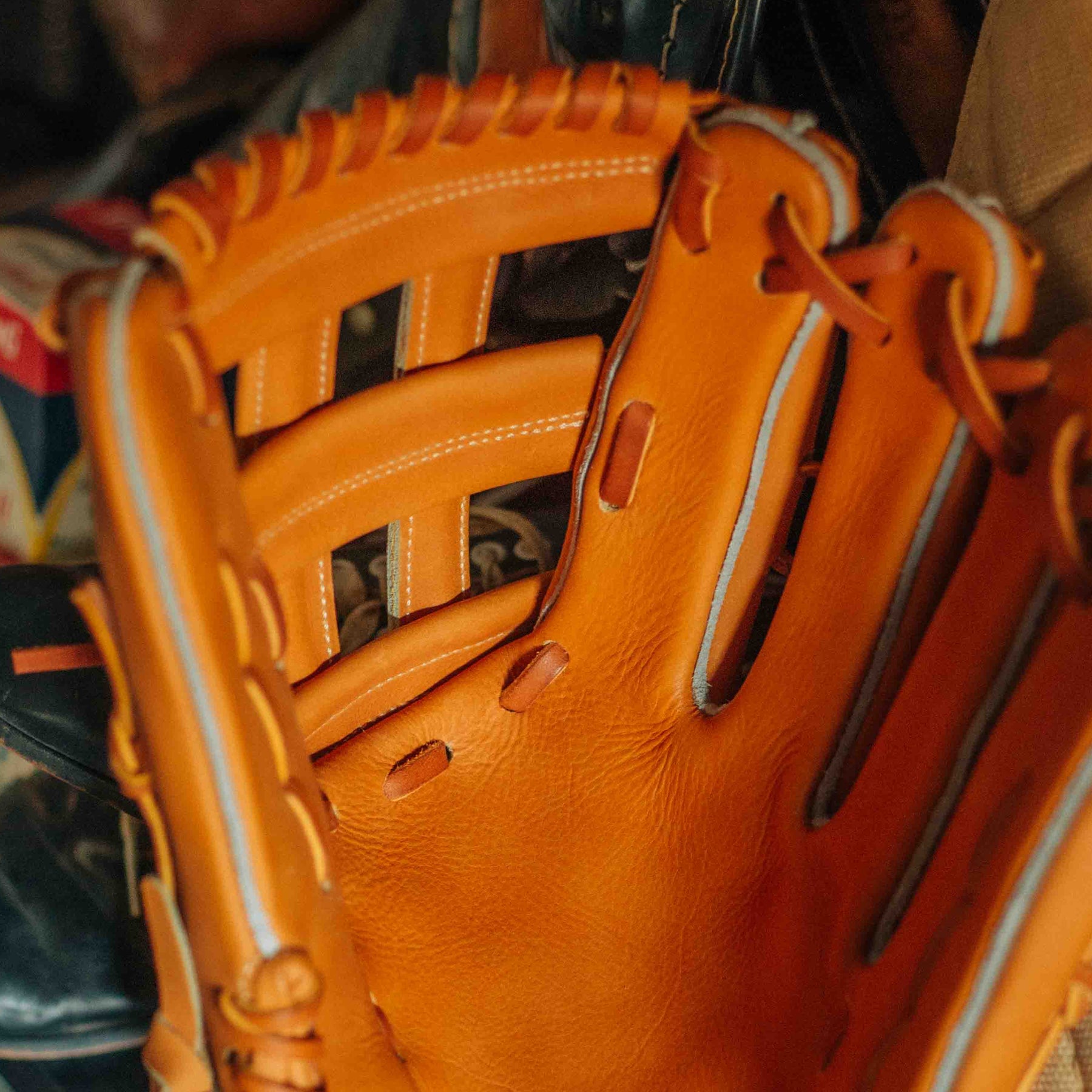 Premium steer hide throughout from Horween Leather - "Our ball glove leather is a straight chrome tannage and is designed to meet the demanding expectations of professional athletes. This tannage is specifically formulated to yield the strength, durability, and temper that are ideal for repetitive use. Only the very finest full grain hides are selected for this fully aniline, oiled leather."
